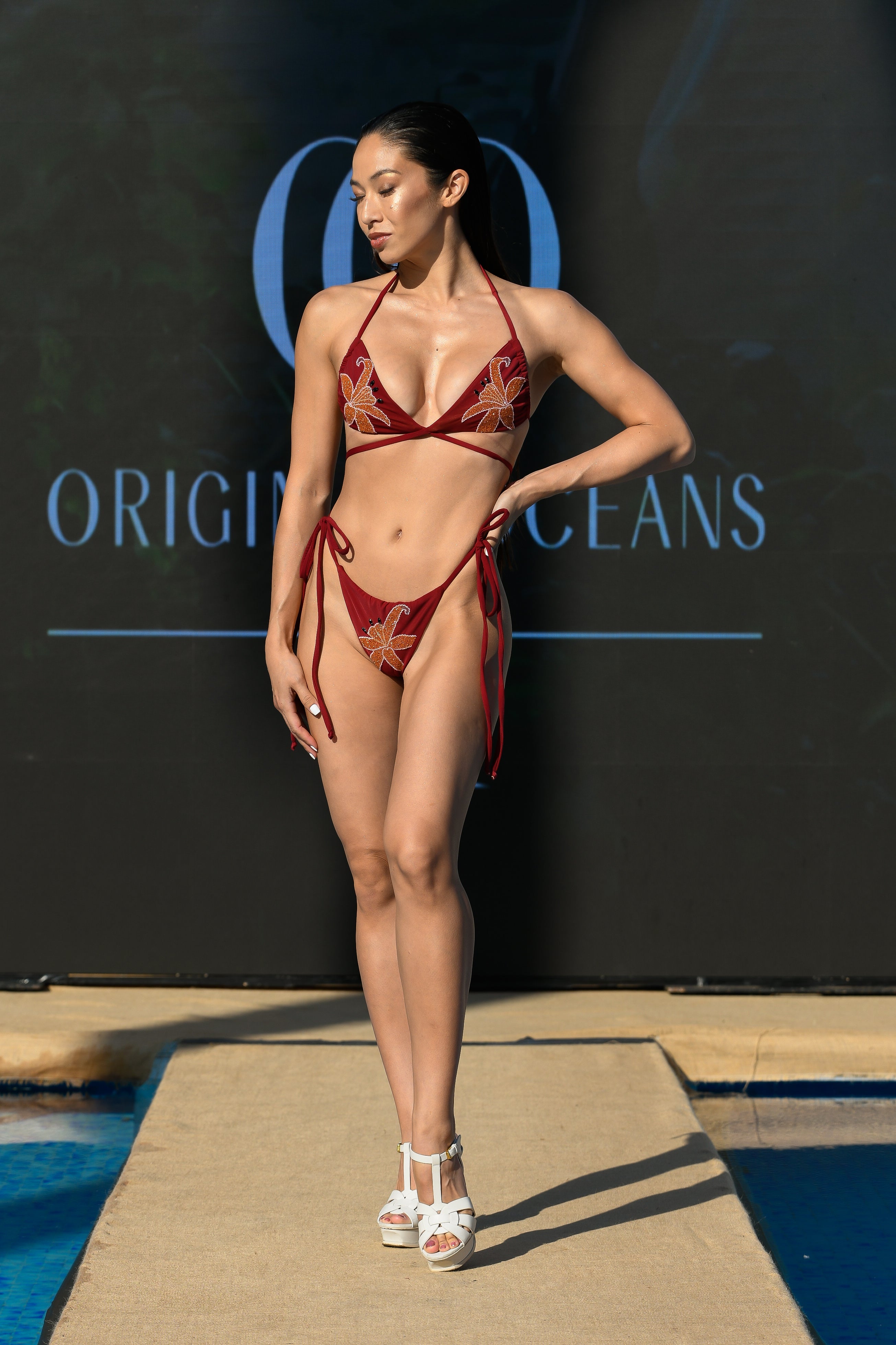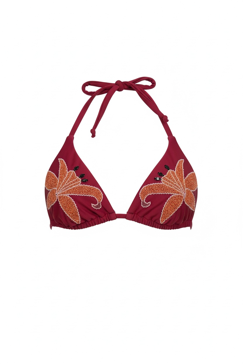 The Georgia Top is a true triangle bikini top and adjustable with beautiful Hawaiian Lily beading.